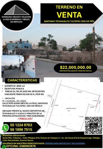 - Ubicado frente al nuevo Deportivo de Teyahualco y a solo 2 minutos de la próxima estación del Tren Suburbano.