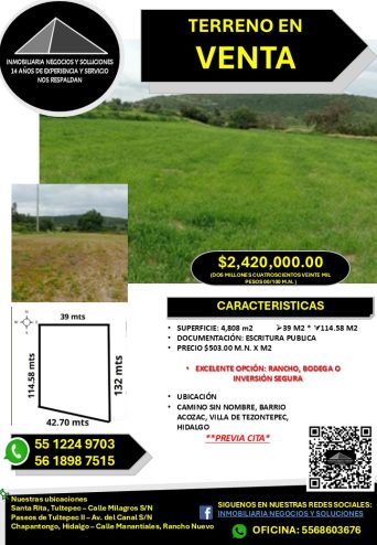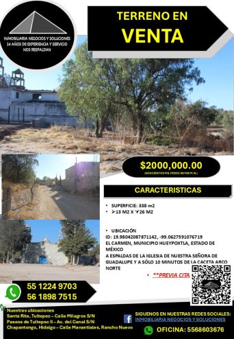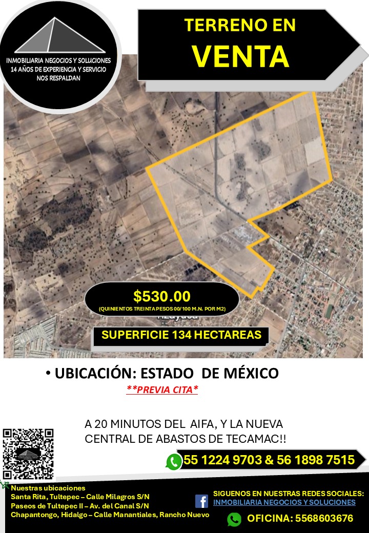En el Estado de México, a 20 minutos del AIFA y la nueva Central de Abastos Tecamac